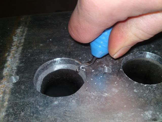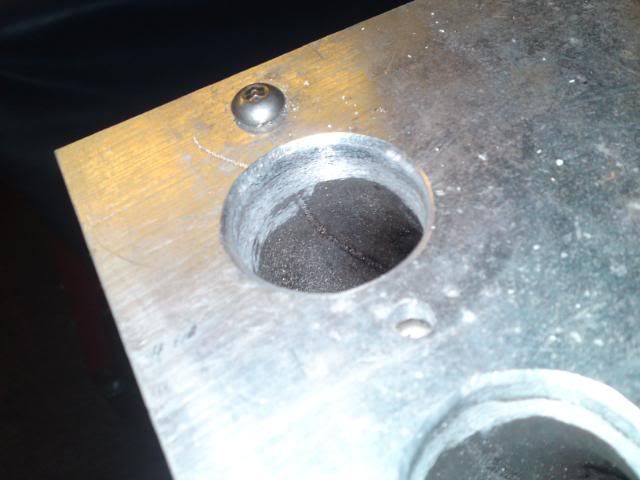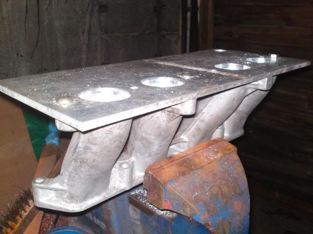 After bolting the ally plate to inlet i holesaw'd through it in line with the runners with a slightly smaller holesaw and the used a rotory burr in a drill to open them out.