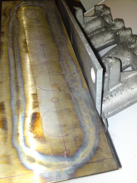 Been Practising my welding again, Not quite as pritty i must say, had to use quite alot of wire as it was quite hard to get the head of the tourch in to the corner of the plenum as there was a much larger plate when i welded it to try and spread the heat and stop it warping which it did quite well with only a corner warping which i bent back with a big adjustable.