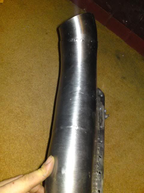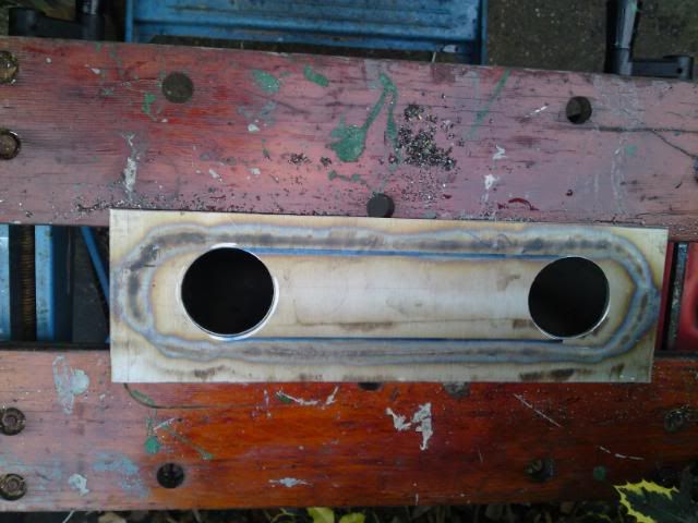 Holes drilled and a slight downward pointing bend welded on to the plenum, not that neat as when i weled the two joining halfs of the plenum togeather and must have slightly miss judged how big a half was as its ended up at just over 3".