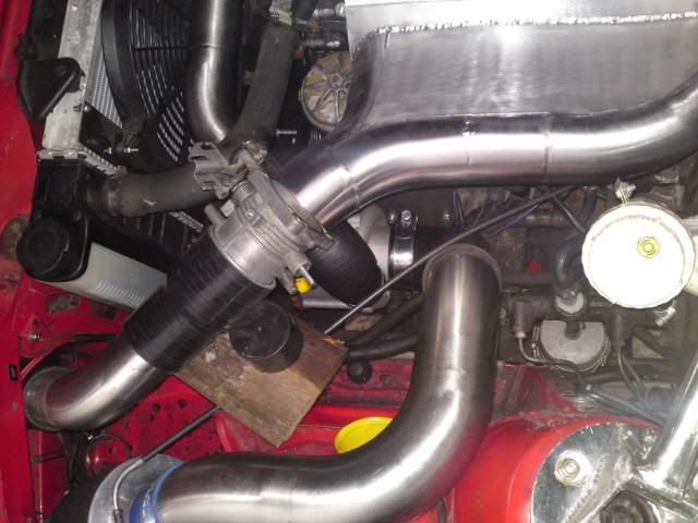 Bolted it on to the car which ment i could weld up a boost pipe for the IC to TB leg of the pipework just need to work out were i want to put the dump valve. :D