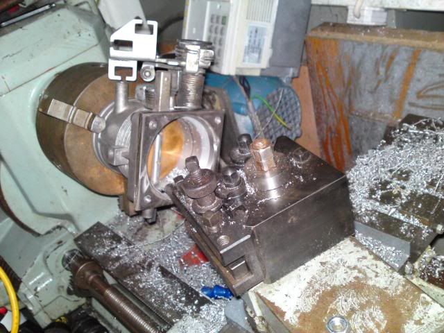 Next machiuned out the stainless plate to weld to the manifold for the throttle to mount on to, as the throttle was just alittle bit smaller than the 3" bore of the manifold, hopefully it will make it flow well :D