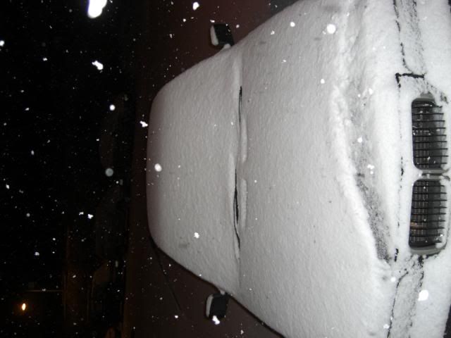 Well... it snowed, the pictures are from about an hour after it started, ended up getting 4 inches. In the first picture, slow shutter speed + no tripod = blurry picture