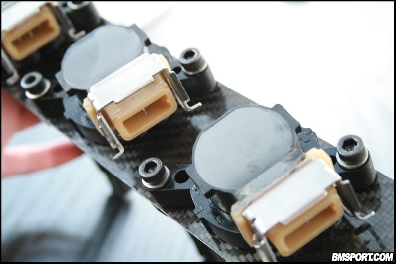 The Coil Packs on Robs ally rail are held on with M6 Allen bolts. Threads can't be easily tapped into Carbon Fibre - the material usually splinters before a decent thread is cut. And even if you were to get a threat cut, the bolt usually rips it clean out if you're too vigorous or harsh. So, I had to lay M6 nuts into the carbon itself and cure the lot together. The result is basically indestructible - unless you don't wrap the nuts in enough carbon...then they'll just rip out (doesn't usually happen; I’m just stating the obvious).