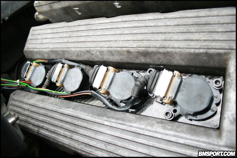 I've been busy with another mod - a Carbon Fibre pre-preg Coil Over Plug rail. It is a direct replacement of rob_E30's rail he provides in his COP Conversion Kit, available