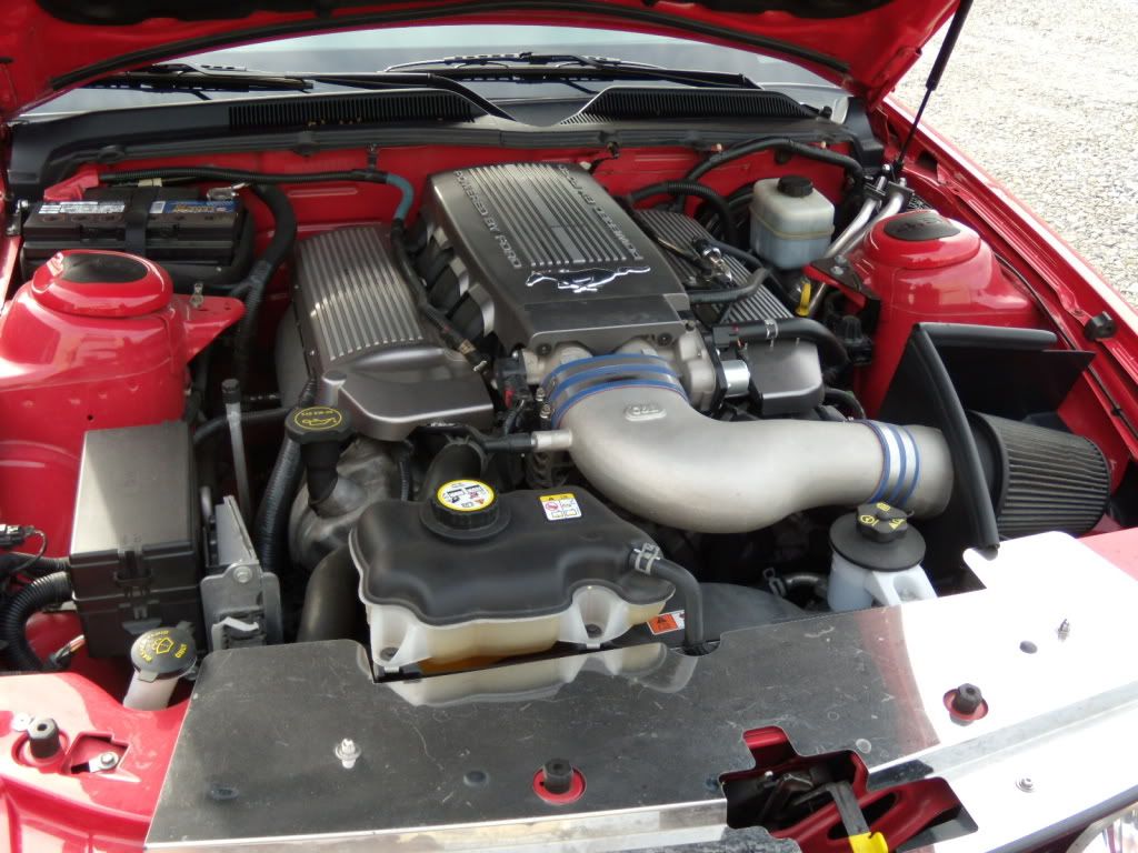 So I was going for a nice drive in my baby, and then I stopped at a shed near my house that I always wondered about. It is like as big as like an 84 Lumber store if you know what that is. It is big. I stopped there because there was a nice mustang outside on the stone driveway. I believed it to be a gt500, which is the only reason I stopped. I got closer and saw it was just a 2007 Mustang GT, but it had a body kit and some tasteful mods. I neglected to cap a pic, but here's the supercharged engine: