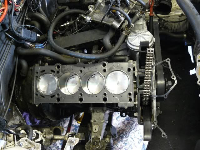 Engine being built! I was pretty worried about breaking rings fitting them to the block as they came from the States and I'm in the UK, so getting a replacement would be a pain, plus I'd had them all gapped and matched up to each cyl, so had to be really cautious!:
