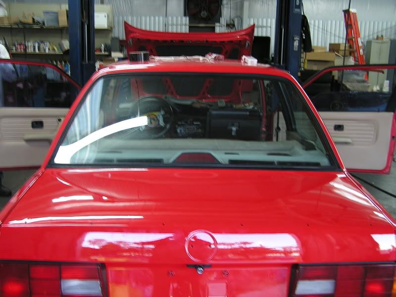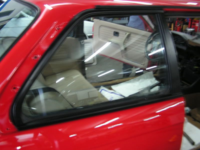 We took the glass out because some idiot cut a square out of the head liner and it has to be replaced. Well I sanded the car down which got crap in the car and what I did not do the paint shop did.