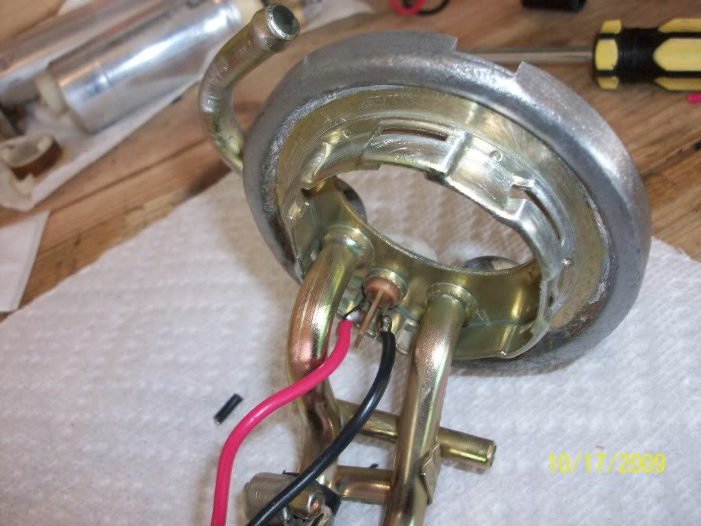 Solder the new fuel pump wire to the existing fuel pump housing plug.